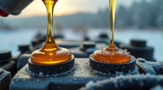 Synthetic oils use engineered molecular structures that maintain viscosity across extreme temperature ranges far better than refined petroleum products. At -40°C, conventional oil thickens dramatically, requiring extended cranking and causing delayed oil pressure. Synthetic oil flows immediately, providing instant lubrication when engine stress is highest.